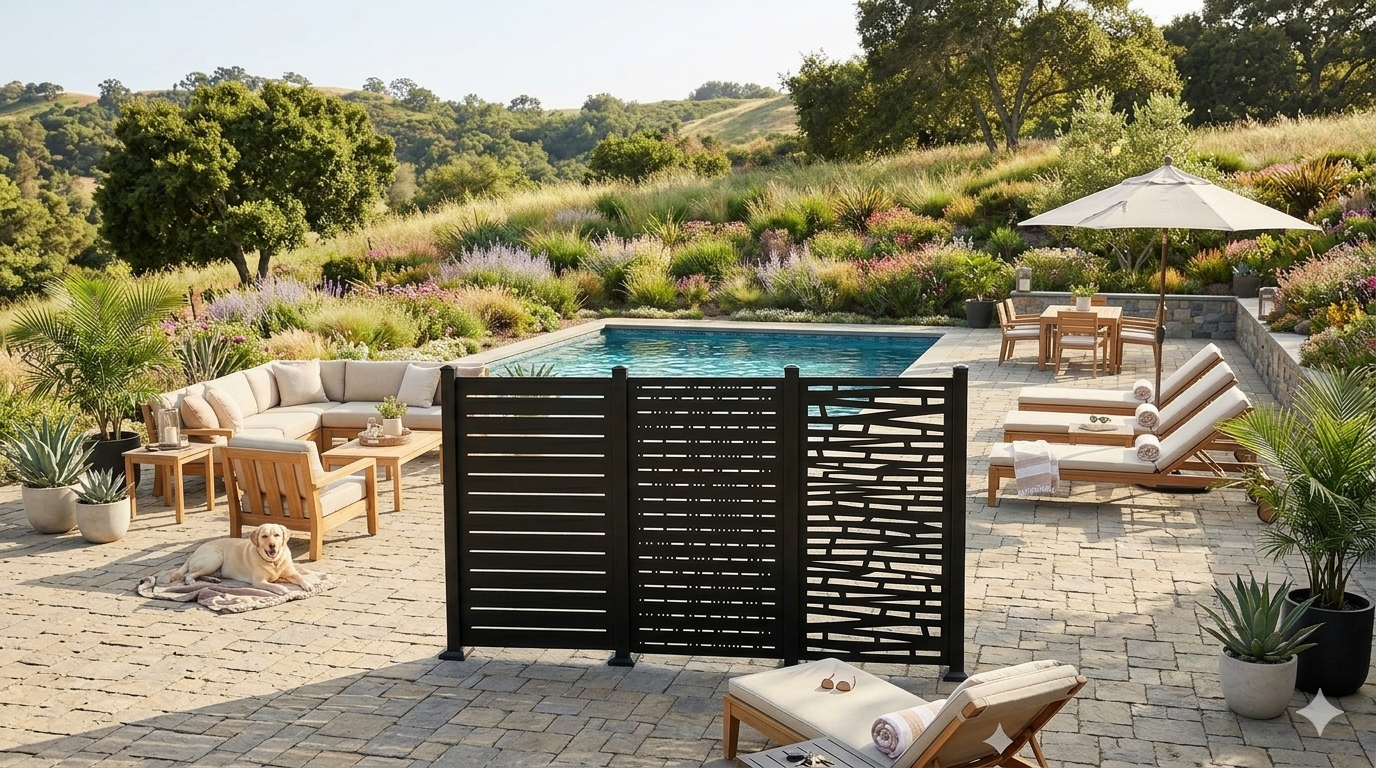 PrivacyPlus+ aluminum privacy panels offer a stylish, low-maintenance solution for creating comfortable outdoor living spaces. Whether you're looking to add privacy to a deck, patio, pergola, or pool area, our precision-cut aluminum panels provide the perfect balance of beauty, durability, and performance. Designed to withstand the elements, PrivacyPlus+ panels resist rot, warping, and corrosion while maintaining their modern appearance for years to come.